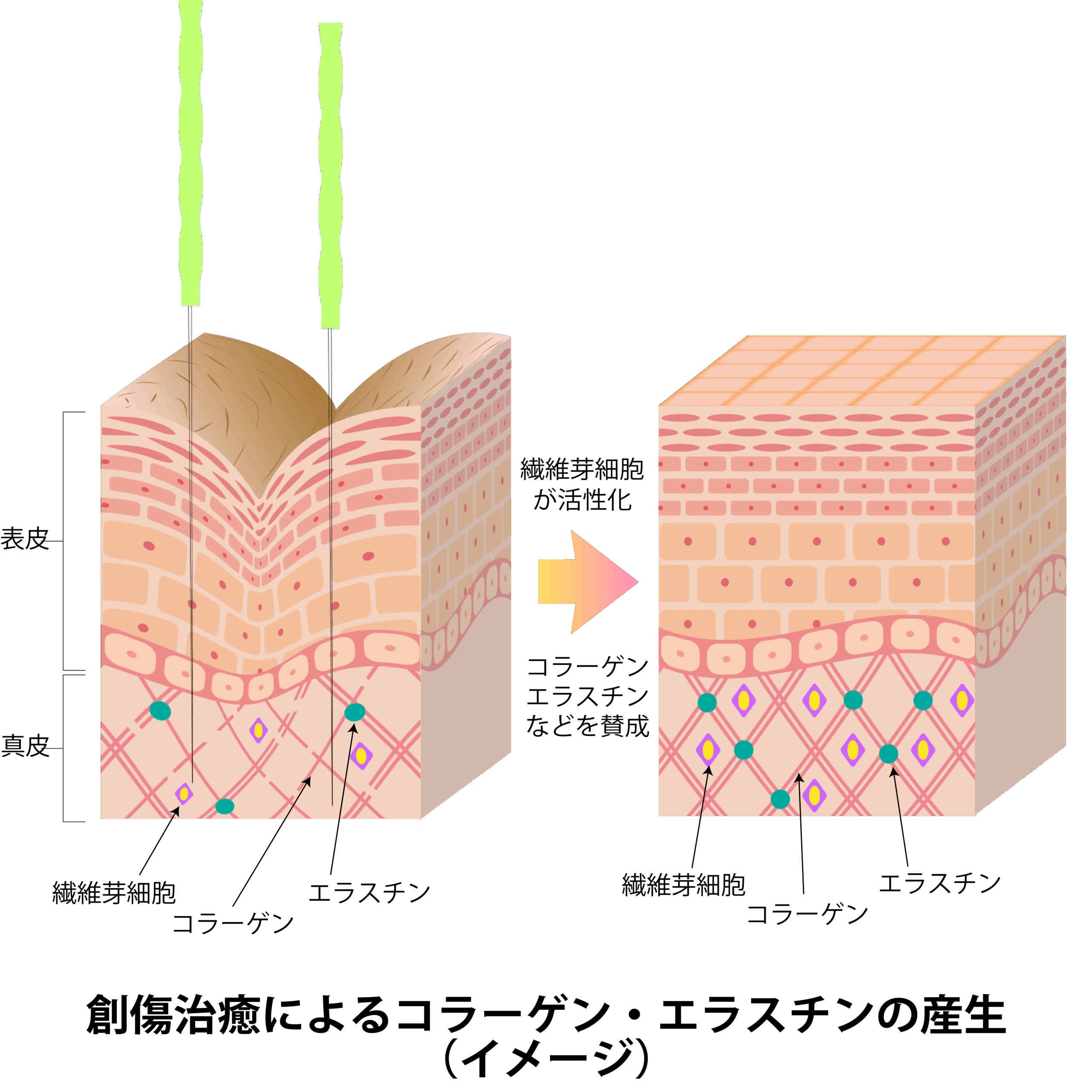 創傷治癒によるコラーゲン・エラスチンの産生(イメージ)